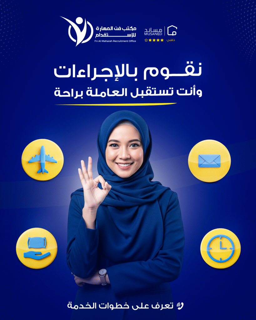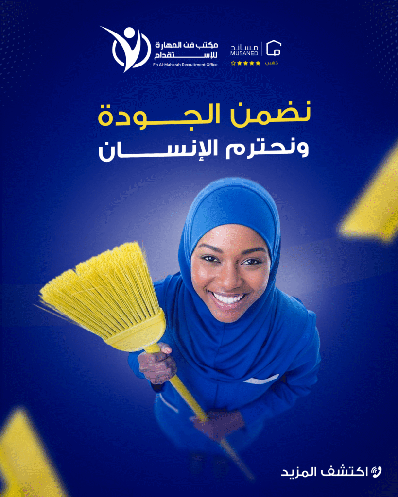 يعمل مكتب فن المهارة للاستقدام على تطبيق معايير دولية لضمان جودة حياة العمالة المنزلية وسلامتها، مما ينعكس إيجابًا على استقرار الأسرة السعودية الكلمات المفتاحية جودة حياة العمالة المنزلية، معايير الاستقدام، حقوق العمالة المنزلية، مكتب استقدام آمن، الاستقدام في السعودية المحتوى العمالة المنزلية جزء أساسي من حياة العديد من الأسر في المملكة، لذلك فإن ضمان حقوقها وجودة حياتها أمر جوهري لاستمرار علاقة العمل بشكل إيجابي ومستدام يحرص مكتب فن المهارة للاستقدام على الالتزام بمعايير الجودة والسلامة المهنية منذ لحظة التعاقد وحتى تسليم العاملة للعميل :ويتم ذلك من خلال اختيار الكوادر بعناية من مكاتب خارجية معتمدة التأكد من تدريب العاملات على المهارات المنزلية والسلوكيات المهنية تطبيق عقود واضحة تضمن حقوق الطرفين المتابعة المستمرة لحل أي ملاحظات بعد الوصول بهذه الخطوات، يسهم فن المهارة في تحسين تجربة الاستقدام وتحقيق التوازن بين راحة العميل وكرامة العاملة
